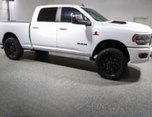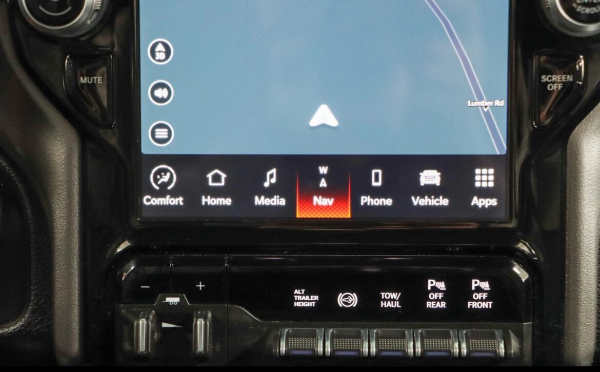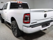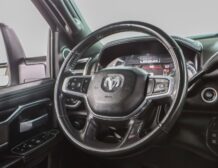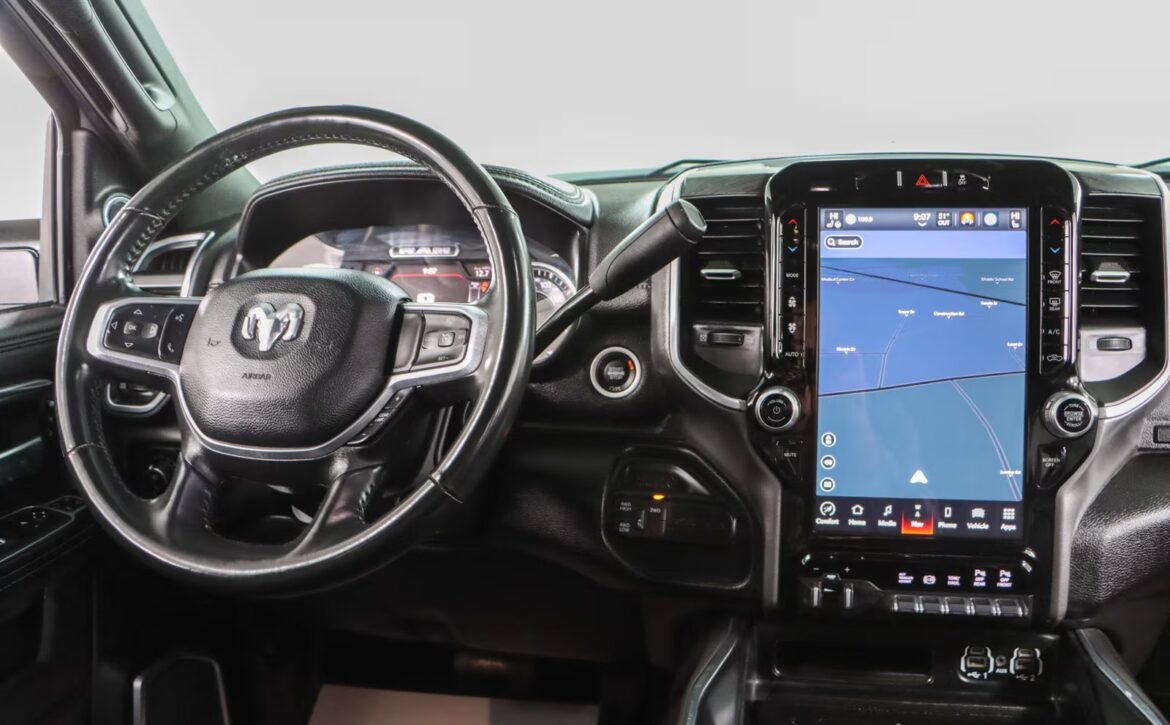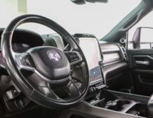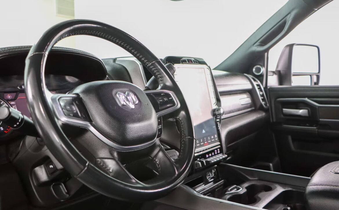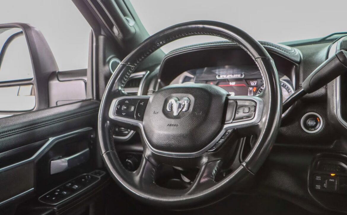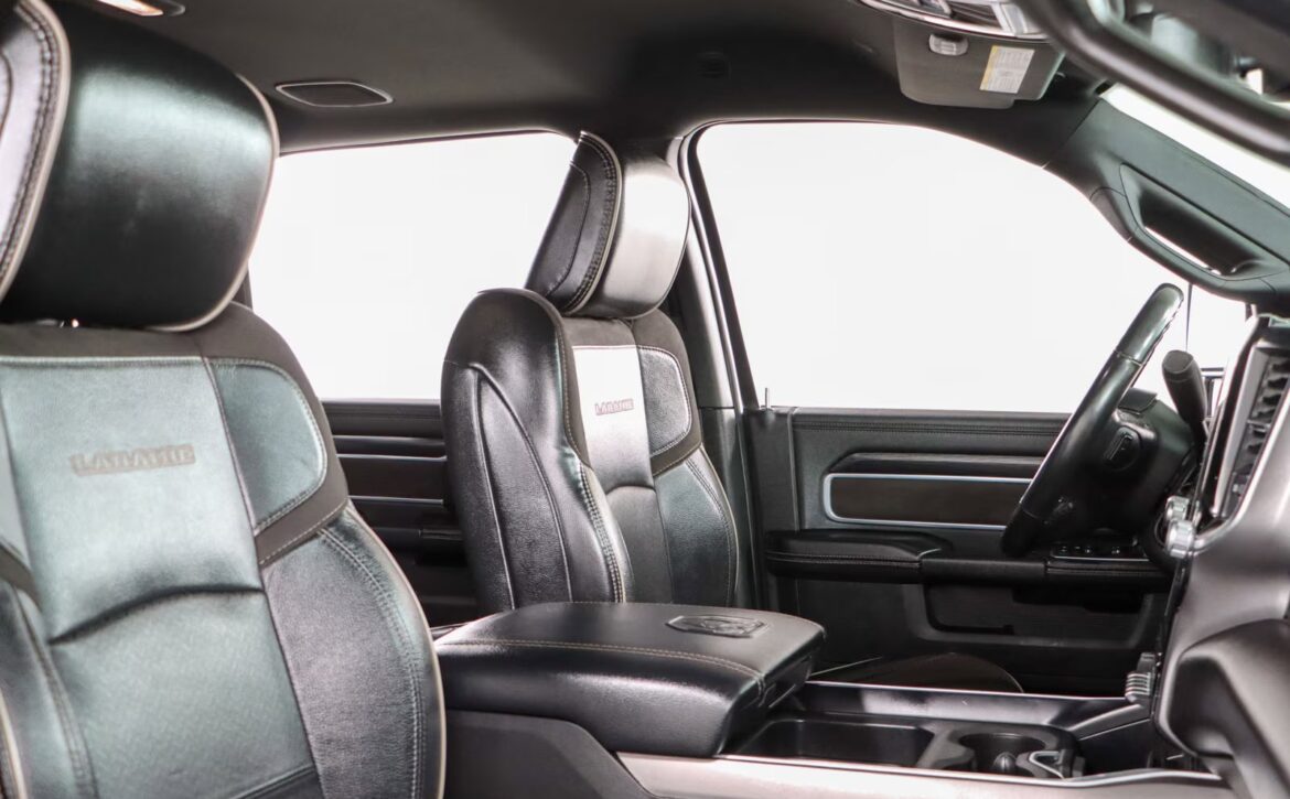 The Laramie trim brings refined touches throughout: leather‑trimmed heated and ventilated front seats, a large Uconnect touchscreen infotainment system, premium audio, dual‑zone climate control, and remote start for added convenience. Advanced towing technologies and multiple camera views simplify trailering, while a reinforced bed with integrated tie‑downs and durable alloy wheels ensure real‑world utility. The 4×4 drivetrain and stout suspension make this truck ready for jobsite duty or off‑road adventures alike.